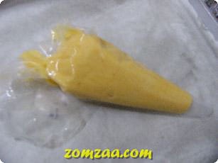 6. ตักส่วนผสมของไส้ใส่ถุงบีบอีกเช่นเคย และเตรียมประกอบร่างคะ โดยนำแป้งชูว์ที่พักไว้ แล้วเอากรรไกรเจาะหรือตัดด้านข้างให้เป็นรู นิดนึง แล้วบีบไส้ใส่ลงไป (พอจะนึกออกกันอะป่าว) พอดีไม่สามารถในการถ่ายรูปได้ เลยไม่มีรูปให้ดูขอโทษด้วยนะค่ะ ^^’