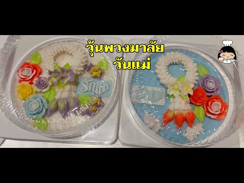 สวัสดีค่ะช่วงนี้ใกล้วันแม่แล้วนะคะ ปีนี้พี่ส้มก็เลยจะนำเค้กวุ้นพวงมาลัยธีมวันแม่มาฝากน้องๆกันค่ะ