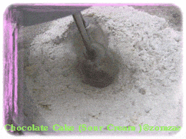 2. นำแป้งที่ร่อนแล้วมาผสมกับน้ำตาลทรายแดง